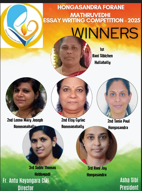Soby Thomas from our parish secured the 3rd place in the essay writing competition organized by Hongasandra Forane, standing out among 31 participants.